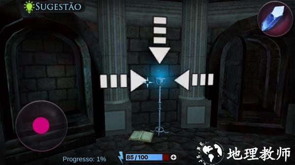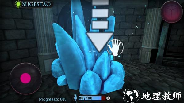 5、走到场景后面,能看到一颗水晶,上前触摸它,即可获得这颗水晶。