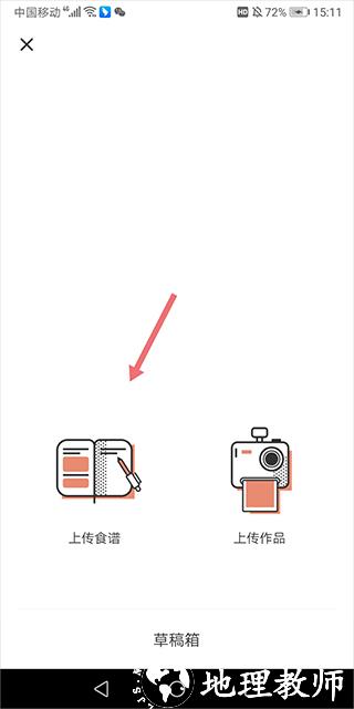 1、用户同样是进入到应用的【我】页面中进行上传,只不过现在是点击【上传食谱】