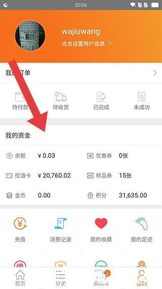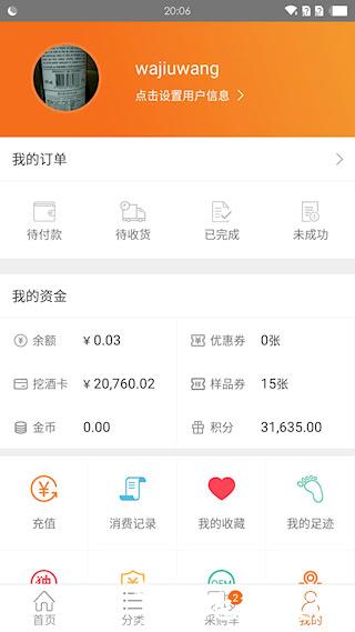 3、个人中心支持编辑资料,清晰排列各状态订单标签,独立版块展示账户余额、预付卡及积分金币资产,并提供资金流水与消费明细查询服务。