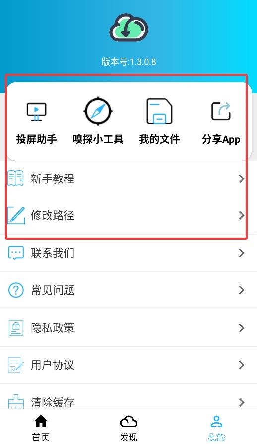 4、进入个人中心后,可修改存储路径、使用投屏助手、嗅探工具及管理文件列表。