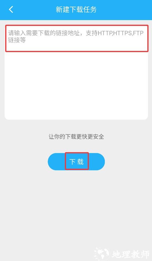 2、在首页点击新建下载任务按钮,即可进入链接输入界面。