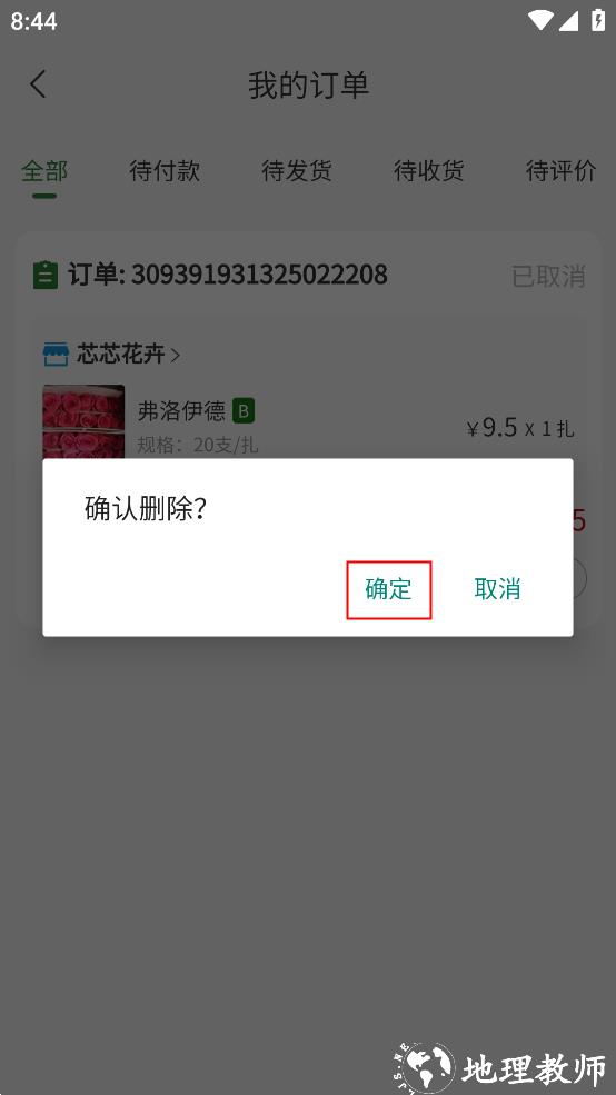 2、进入【全部订单】页面,找到需要删除的订单记录;