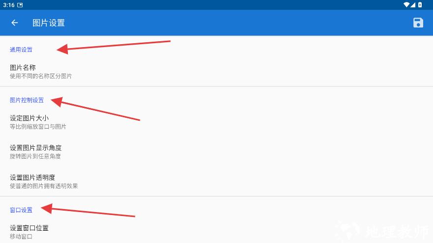 4、在图片设置界面,依次完成通用设置、图片控制设置、窗口设置,修改后保存。