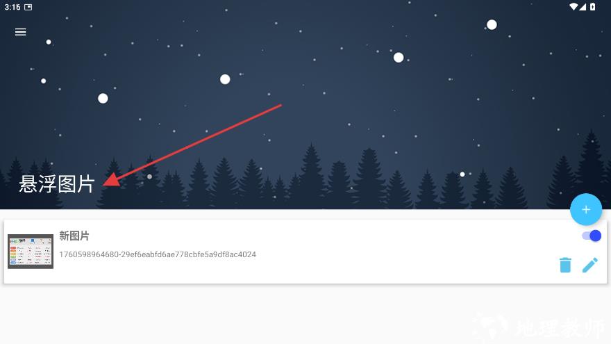 5、保存成功后效果如图示,添加的悬浮图片会在之前的新建页面中显示。