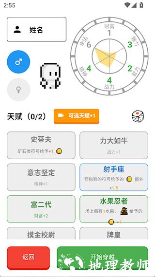 1、角色定制:自由设定角色天赋、初始技能、外貌等,从职业、种族、技能中选择,打造独一无二的冒险开局。