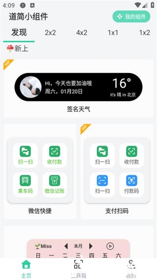 1、在本站下载并安装道简小组件 iScreen,安装完成后打开 APP,进入软件主页,浏览各类小组件资源。