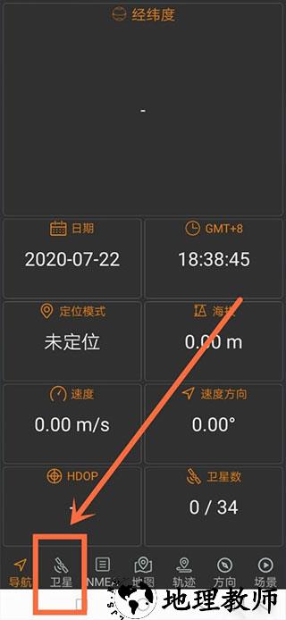 2、进入主界面后,底部设有【卫星】【地图】【导航】【我的】四大功能板块,可按需切换。