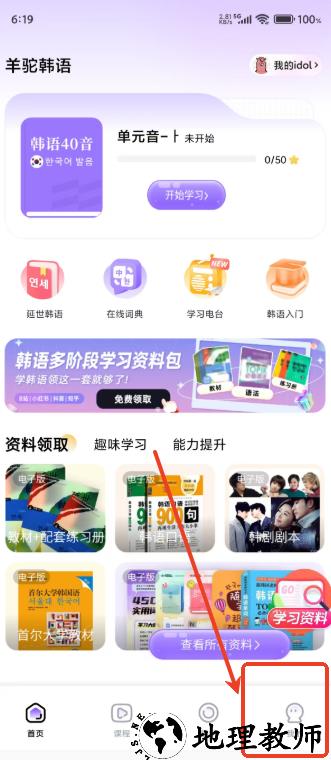 羊驼韩语app官方版是一款好用的韩语在线学习软件,其画面十分的简洁清新,融入了不同的页面板块让用户一目了然的找到相关需求,可以学习21个元音、19个辅音、韩语发音、口语练习、情景对话、韩文阅读等知识技能,帮助每一位用户更加快速的提高你的听、说、阅读等能力,感兴趣的朋友千万不要错过哦,快来地理教师下载网下载体验一下吧!