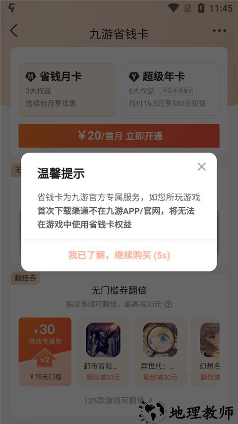 4、部分游戏可能限制省钱卡代金券使用,开通前建议查看游戏详情页的权益说明。