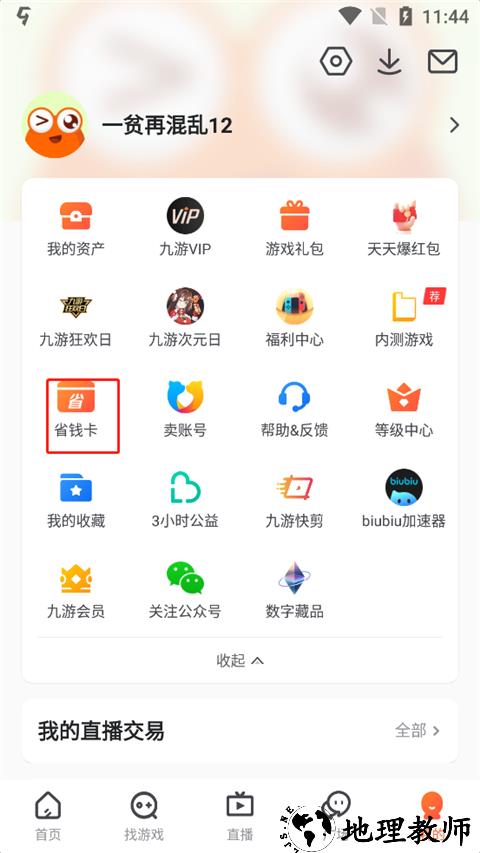 1、进入九游 APP “我的” 界面,找到 “省钱卡” 选项并点击进入。