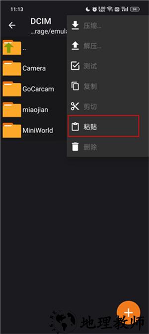 4、点击文件夹右上角的「更多选项」图标(通常为三个点或齿轮标识),在下拉菜单中选择「粘贴」,即可完成文件移动。