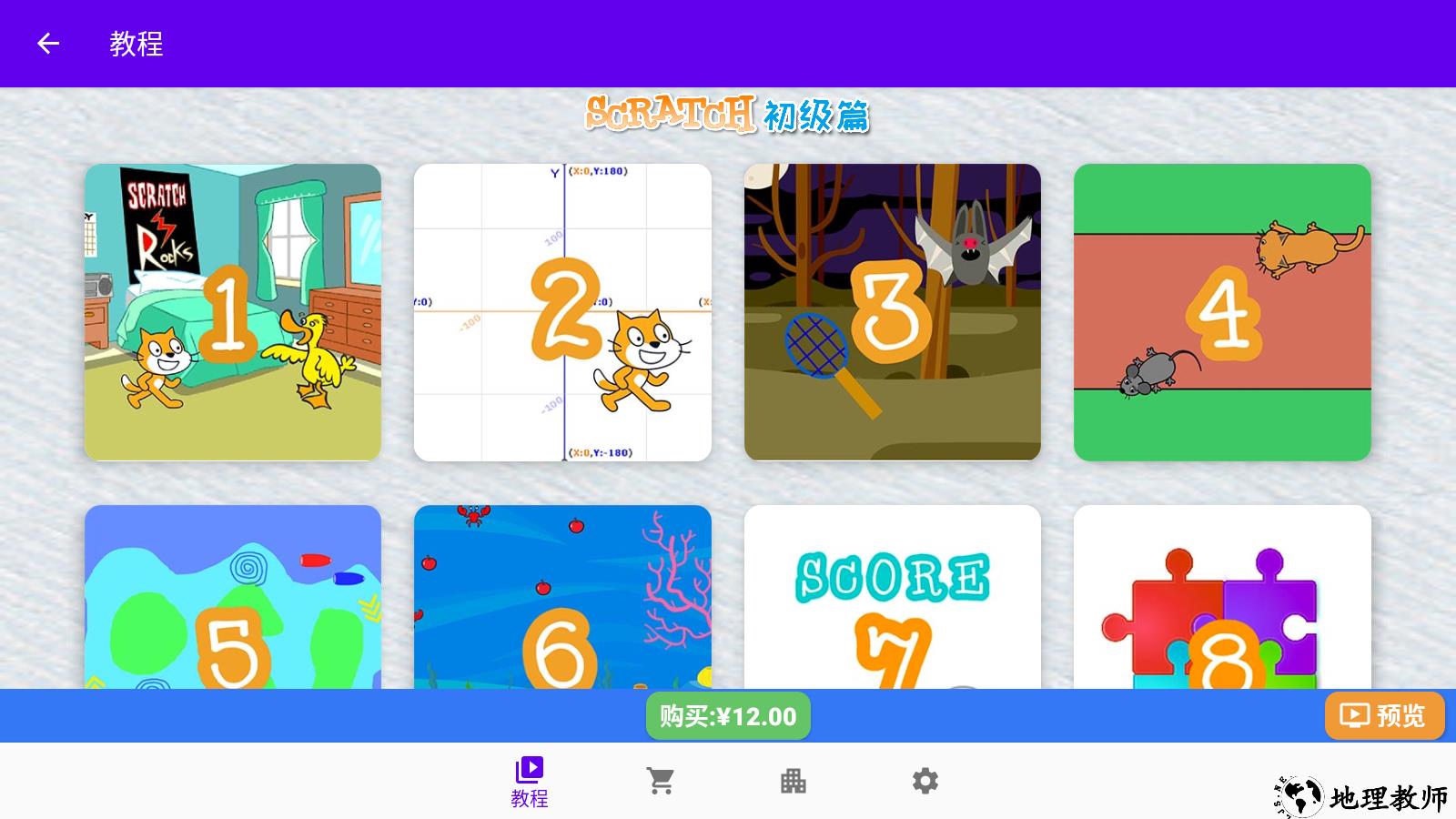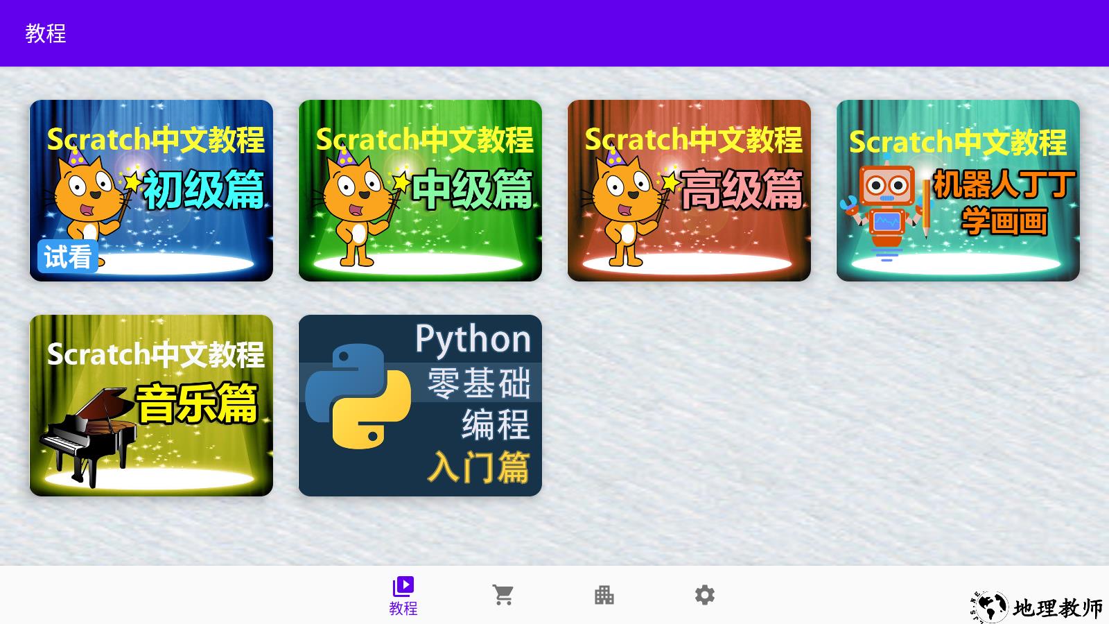 1、在地理教师下载网下载 Scratch 中文教程应用,安装完成后打开进入主界面。
