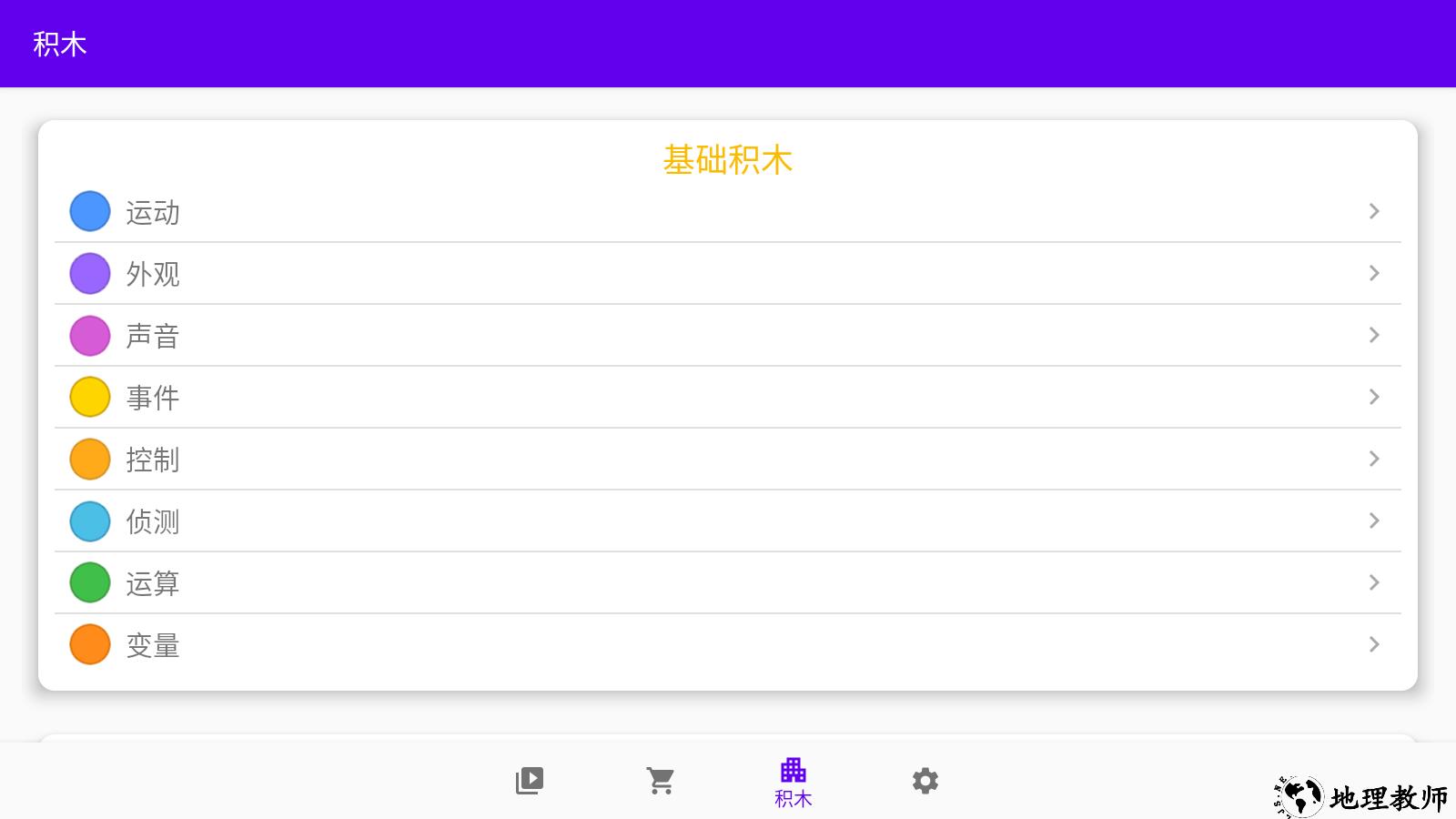 4、积木板块提供积木功能查询服务,助力理解并运用 Scratch 编程。