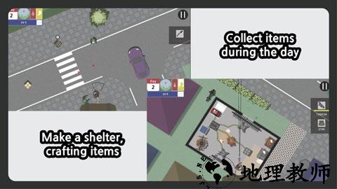 2. 昼夜系统:白天视野开阔,适合探索与资源采集;夜晚视野锐减,僵尸攻击力与移动速度提升,需提前寻找封闭房屋建立火堆或机枪塔据点。