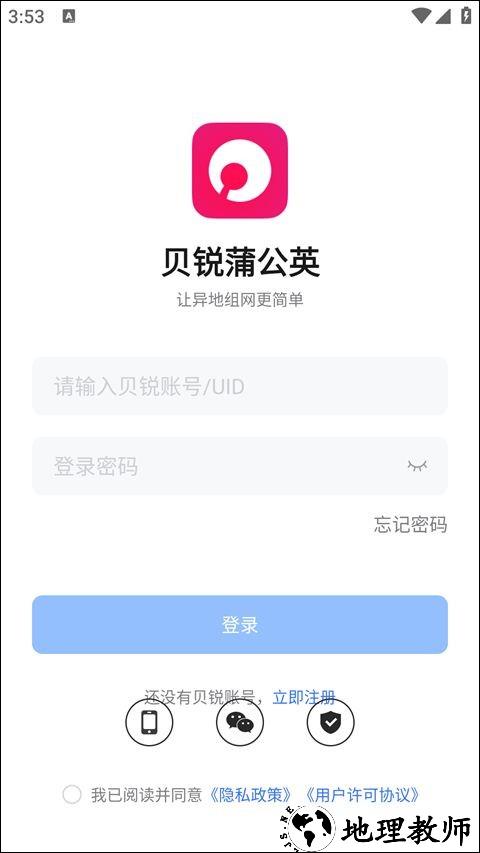 1、打开贝锐蒲公英软件,需完成登录后即可使用,支持多种登录渠道选择;