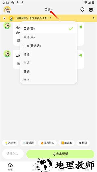 5、会员服务可解锁无限对话与更多语言选择,满足不同学习需求,助力高效提升口语能力。