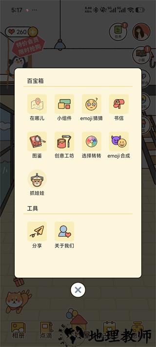 4、用户可进入商店,用积累的爱心购买装扮道具,再到仓库中提取并使用道具装扮小屋;