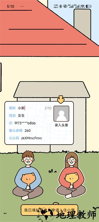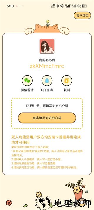2、邀请好友选择与你不同的身份,双方输入彼此的心心码,共同加入同一间小屋;