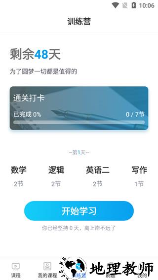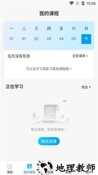 4、进入我的课程栏,可清晰查看当前正在学习的科目及当日需完成的学习任务。