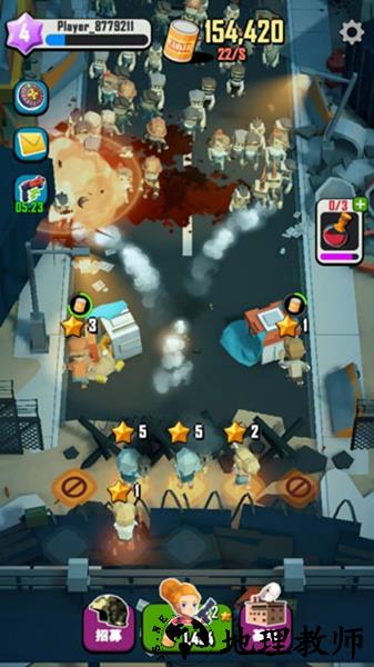 2、可通过招募系统解锁不同类型的士兵(如突击手、狙击手、医疗兵等),并消耗资源提升士兵等级、解锁技能与强化装备,组建强力防御队伍,成功抵御一波波僵尸的猛烈入侵,守护生存阵地;