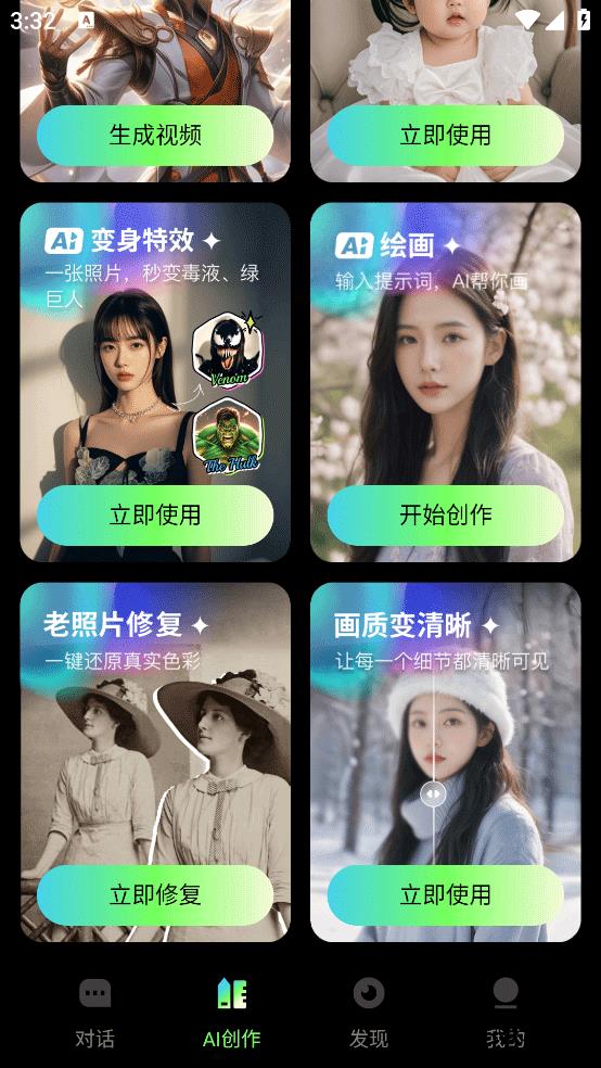 3、整合多风格 AI 绘画与老照片修复功能,让艺术创作更丰富,珍贵回忆呈现更清晰。