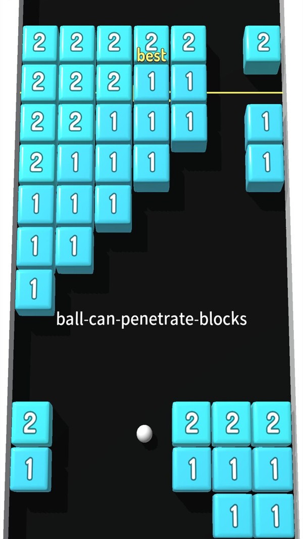 2. 数字方块的消除:每个方块上的数字代表需要被击中的次数,玩家需要合理规划小球的弹射路径,以消除所有方块。