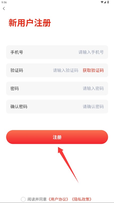3、填写手机号获取验证码短信,设置并确认登录密码后完成账号注册申请。