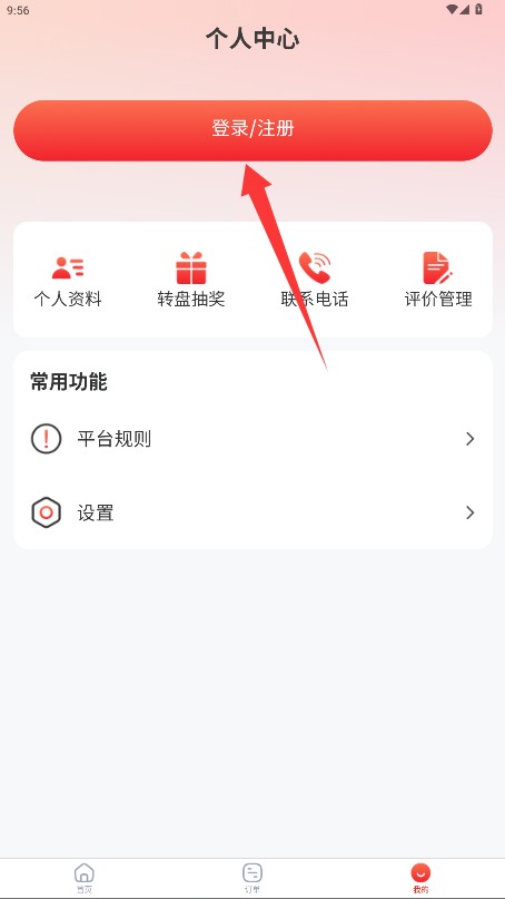 2、在个人中心选择登录/注册功能模块,进入账号创建页面开始注册操作流程。