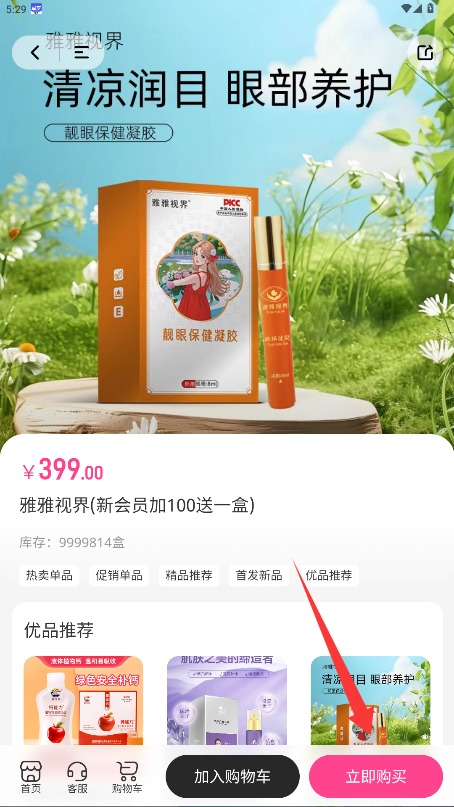 4、进入商品详细信息界面后,点击页面右下角立即购买按钮即可完成订购流程。