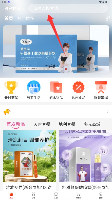 3、在首页商城顶部搜索栏输入商品名称或相关关键词,搜索需要的商品进行浏览。