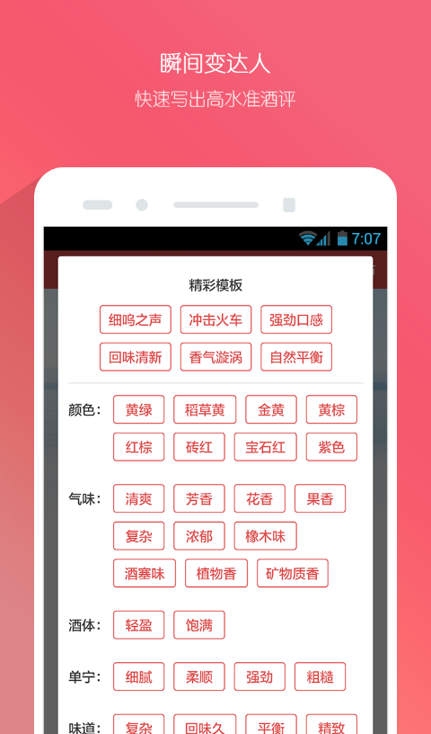 2. 标签系统:应用内嵌有趣的图片标签,便于用户快速分类和查找品酒笔记,同时发现和结识有相同品酒偏好的酒友。