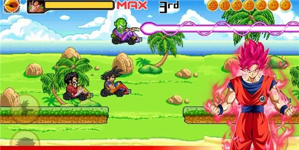 将人气动漫和卡丁车结合在一起会发生什么有趣的反应呢,这个龙珠z超级卡丁车中,我们可以控制各种龙珠中的角色来进行一场卡丁车比赛,各种老粉丝们耳熟能详的人物在这里齐聚一堂,在卡丁车比赛的过程中,你还可以使用不同角色的技能来帮助你获得胜利。