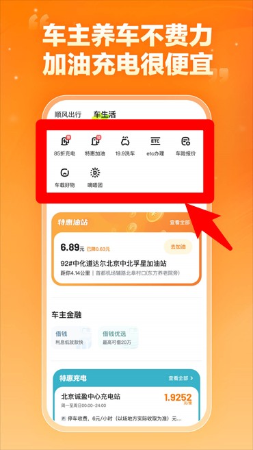 5、车生活模块集成85折充值、特惠加油、ETC办理等功能,养车充电省钱又高效。