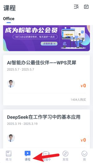3、点击底部导航栏的课程按钮可以进入课程学习页面,查看并选择相关办公或考试学习课程进行观看。