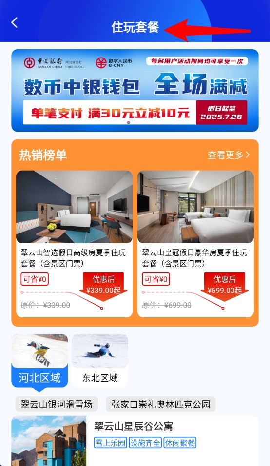3、住玩套餐页面提供热门酒店加景区联票组合,清晰标价,适合计划短途度假的用户。
