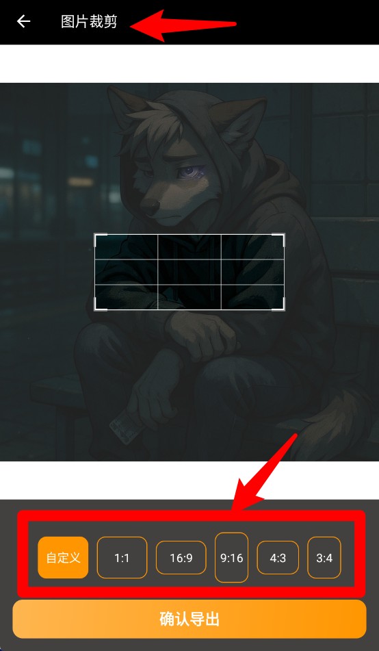 3、图片裁剪支持多种比例,用户可自由选择1:1、9:16等格式进行自定义裁切。