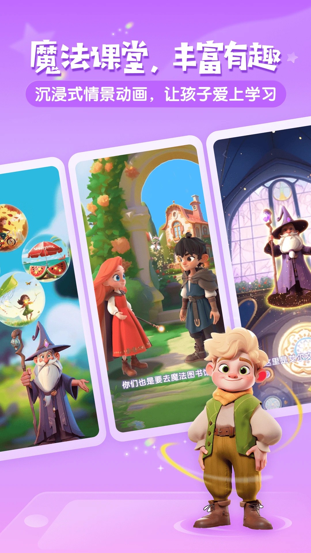 3. 沉浸式动画教学引擎:采用第一人称视角的3D动画场景,将语法学习融入剧情互动,例如在“魔法厨房”场景中,孩子需用英语描述食材和烹饪步骤,自然掌握名词单复数和祈使句用法。