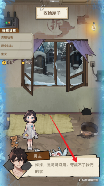 1、严寒环境保暖:设定在冰天雪地的末世场景,保暖是生存关键。需穿戴保暖衣物,同时在庇护所内生火,维持体温避免冻伤。