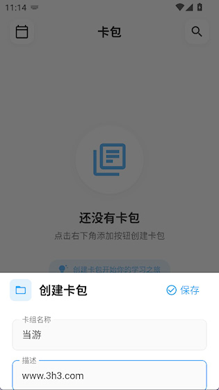2、输入卡包名称和描述,点击保存