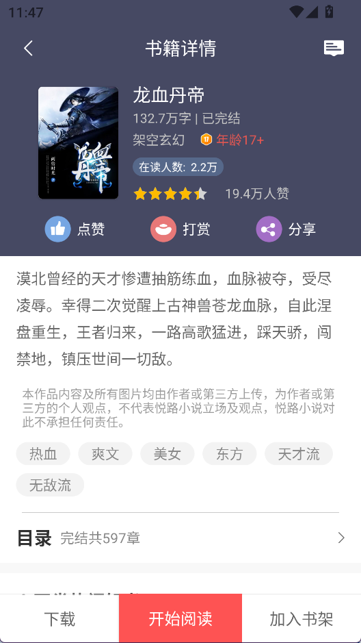 2、点击书籍查看详情,可以下载或加入书籍,点击开始阅读