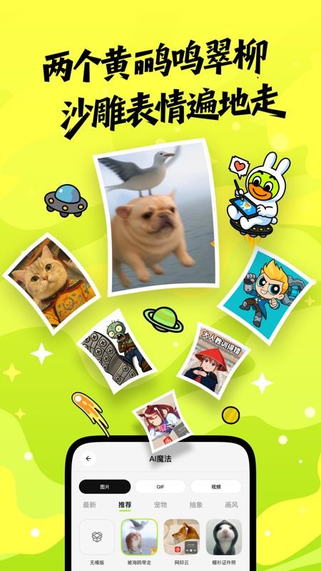 4. 跨平台分享生态:支持一键将作品导出为高清图片、动态表情包或短视频,并同步至微信、抖音、小红书等社交平台。用户还可通过“表情包工厂”功能,将创作的梗图批量生成表情包,满足聊天斗图需求。