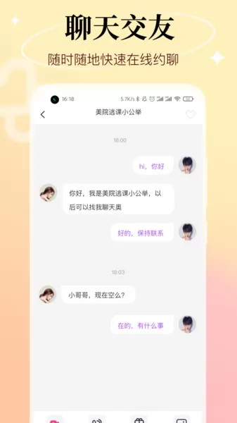 初现聊天交友平台年轻人交友聚集地。特色的语音交友让你感受不同各种治愈的声音,线上房间自由的加入,带给唱歌聊天,游戏等非常多的兴趣等你来加入,一键匹配带给个性畅聊让你脱单,找cp非常的便捷快来下载试试吧!