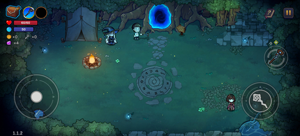 2、游戏采用横版战斗,玩家可通过左侧轮盘来控制角色移动,右侧法杖来攻击敌人;