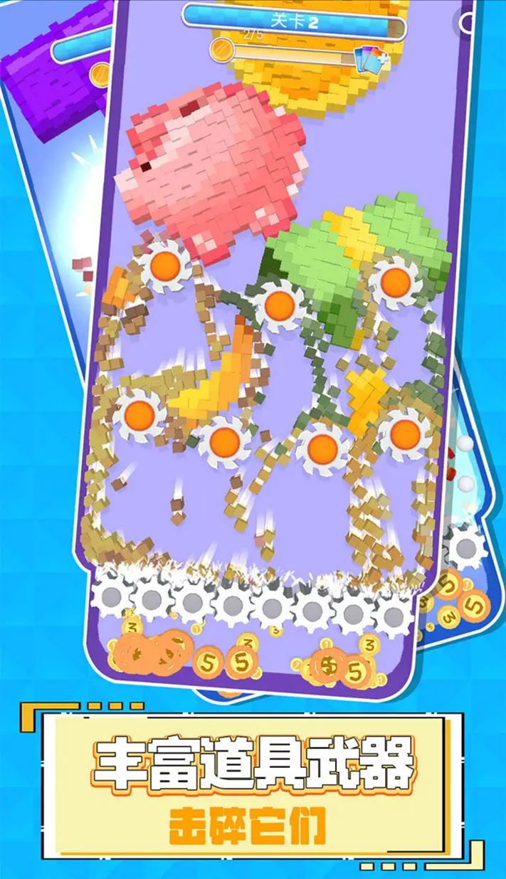 这也忒解压了是一款经典的休闲解压小游戏,他还采用了像素的风格来制作,在游戏中的玩法也非常多样,每种玩法带来的解压感也都是不同的,关卡的数量也很多,每一关中的解压方法会先给玩家提示,玩家只需要跟着做即可,地图里也会有很多道具刷新,玩家在拾取了道具之后粉碎的程度也会进一步提升。
