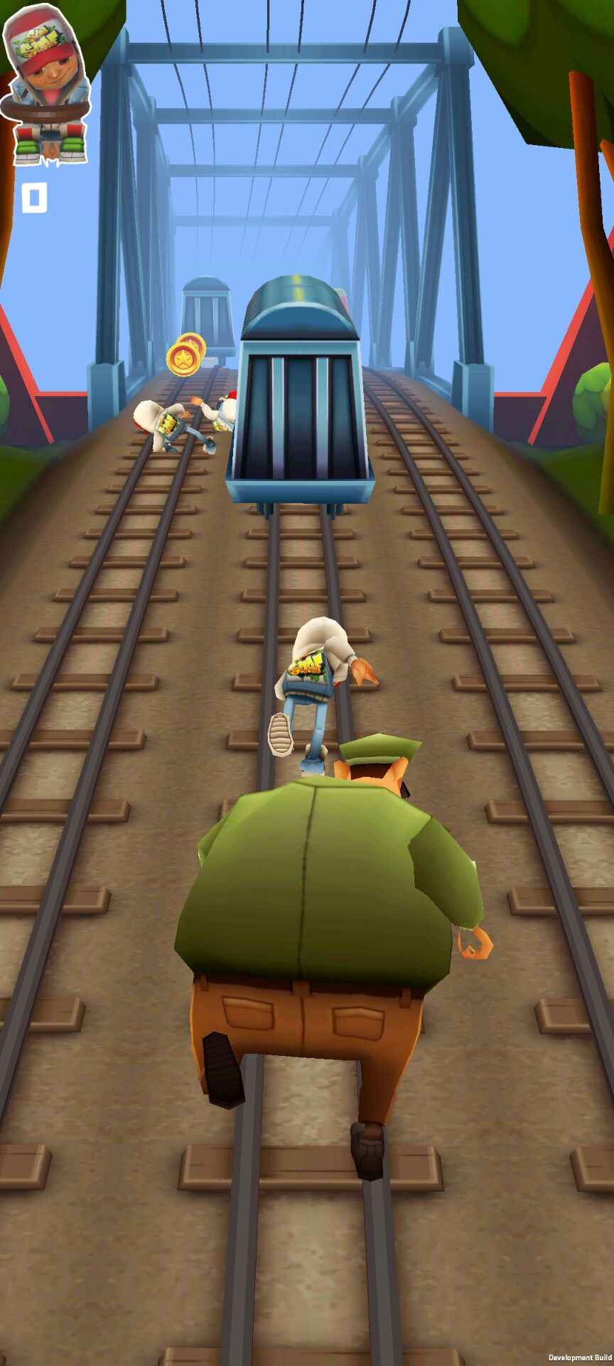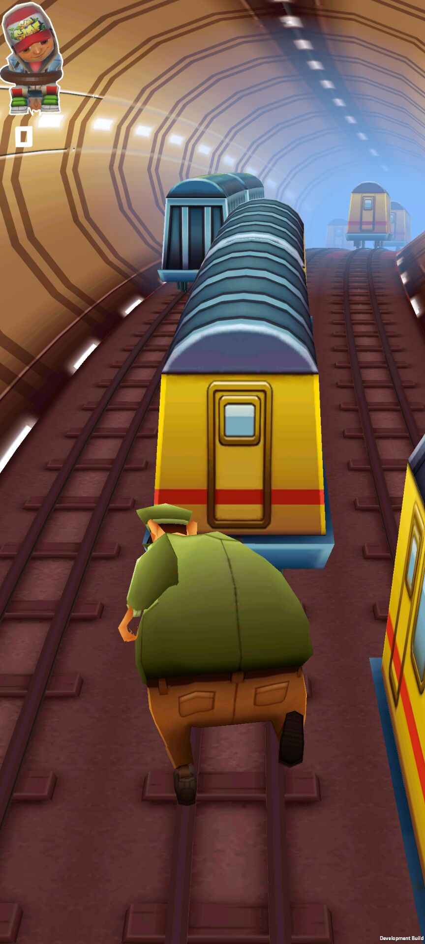 1. 玩家需要操纵保安大叔在地铁轨道上奔跑,并通过左右滑动屏幕来躲避障碍物,同时尝试抓捕前方的逃跑者杰克。