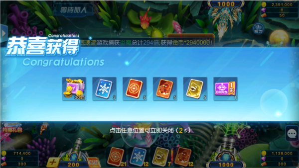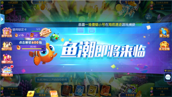 5.实用技能随心用:内置冰冻、锁定两大核心技能,精准控场锁定目标,捕鱼成功率直线飙升!