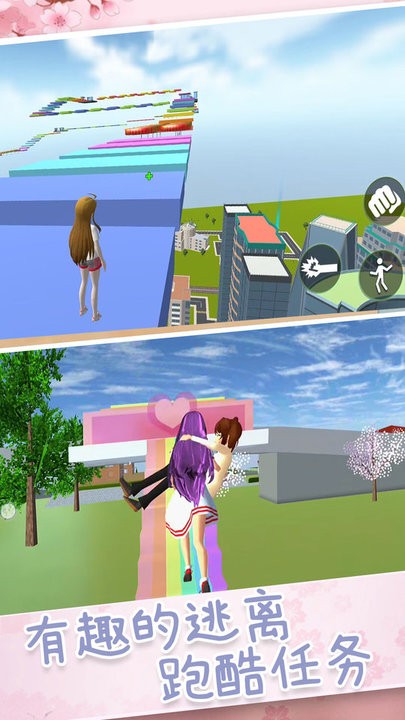 2. 动态校园场景与季节系统:校园场景随现实时间呈现四季变化,春季樱花盛开时,跑酷地图会飘落花瓣特效;冬季则覆盖积雪,障碍物变为冰雕。季节变化不仅影响视觉体验,还会触发限定活动,如冬季“冰雪祭”需完成滑雪跑酷挑战兑换节日限定服装。