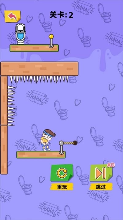 《无脑上厕所正版》是一款融合物理引擎与动态路径规划的益智划线手游,以幽默诙谐的“厕所定位”为核心玩法,通过72种场景挑战构建起烧脑与解压并存的独特体验。玩家需操控角色避开障碍物(如睡觉的狗、移动风扇),利用流体力学模拟系统精准计算尿液喷射轨迹(涉及24个变量参数),在限时压力下规划多层路径(支持5次撤回操作),最终完成上厕所任务。游戏内置ar实景扫描功能,可识别真实环境生成个性化关卡,结合动态难度调节机制(ai根据玩家成功率实时调整路径复杂度),形成兼具策略性与趣味性的脑力对决。