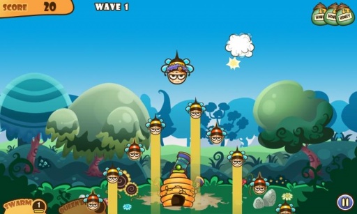 蜂蜜大战 Honey Battle-Bears vs Bees讲述的蜜蜂阻止从天而降的熊偷吃蜂蜜的故事,触屏射击即可。