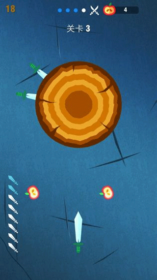 3. 优先命中特殊标记:苹果、金币等标记通常位于目标边缘或空隙处,命中后可获得额外资源,加速解锁新内容。若飞刀数量不足,可优先攻击标记区域。